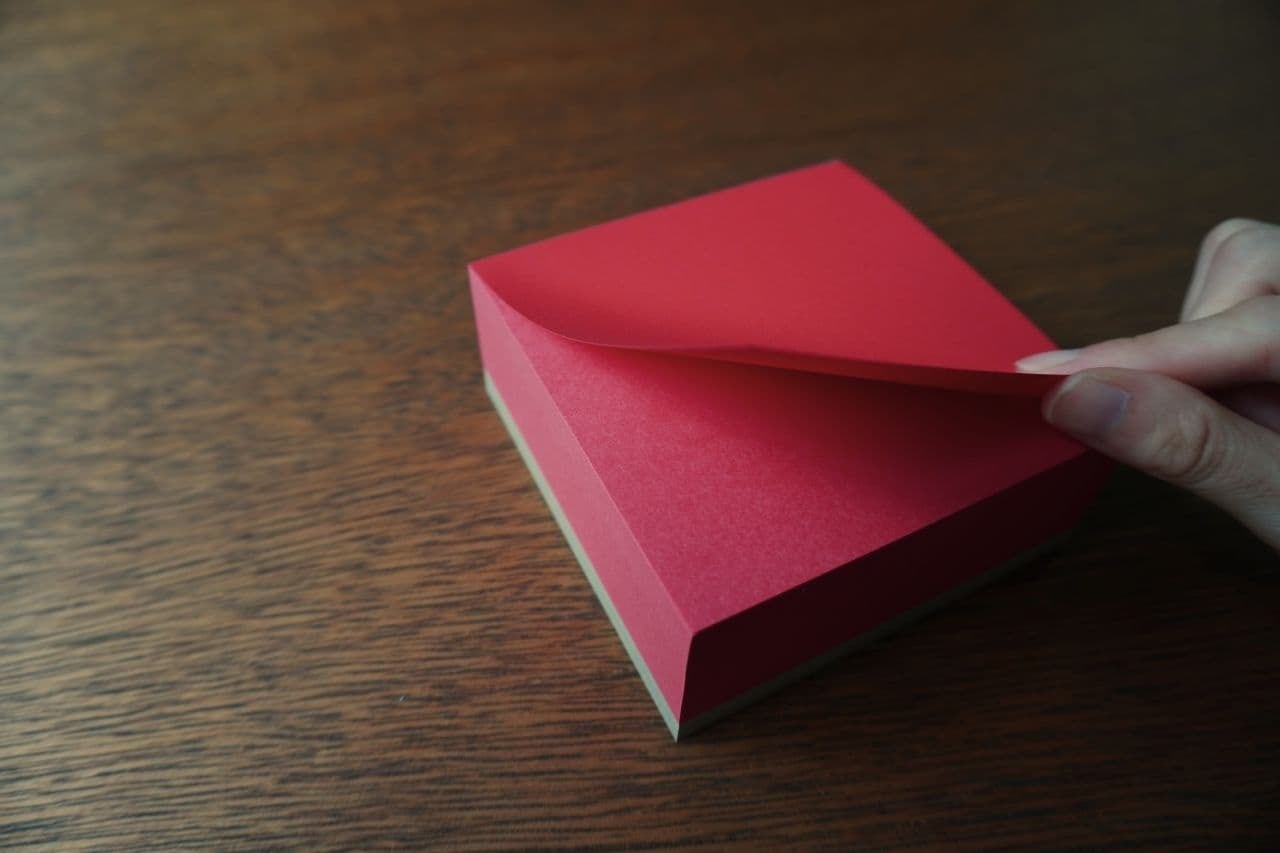 ※赤のメモブロックは1 枚目のみビビットなカラーのラシャ紙を使用し、本文は筆記に適した色上質紙を使用しています。