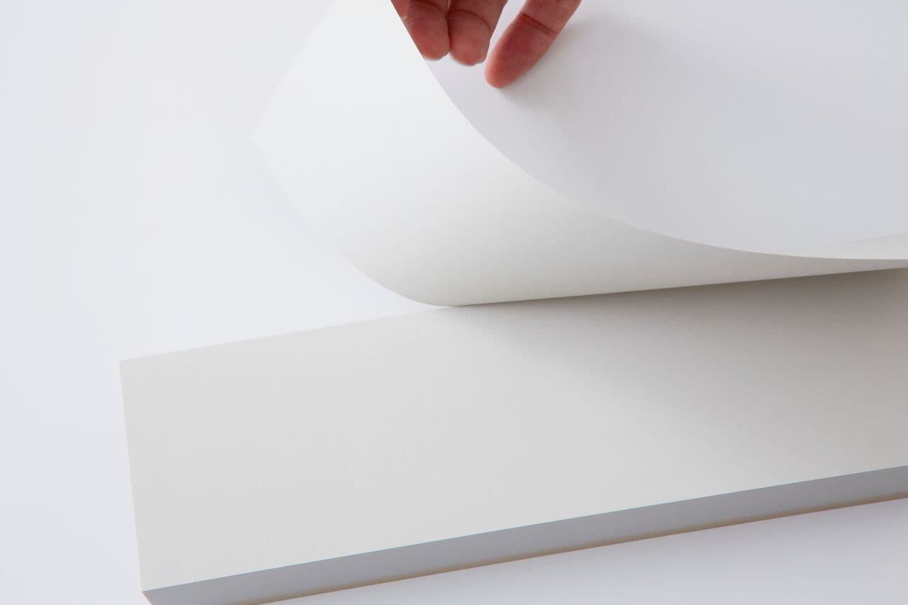 再生紙を原料とする厚みのある台紙が特徴です。材料の選定から最終工程まで、1つずつ丁寧に仕上げました。キレイに切り離すことができます。側面から見る本文と台紙のコントラストは美しく、いかなる場所で使用しても調和します。